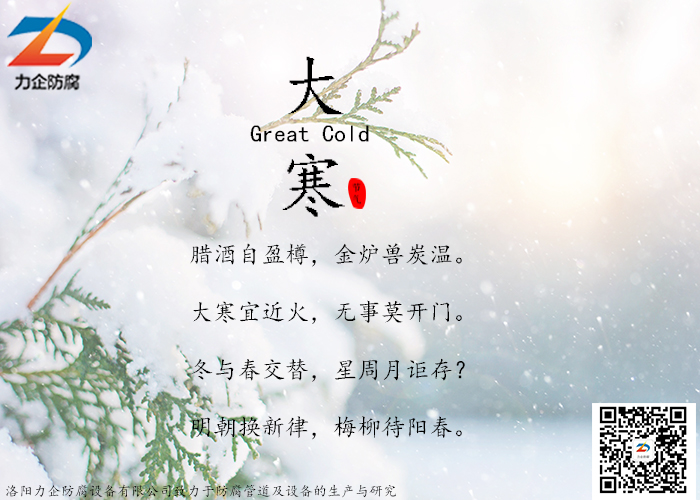 大寒節氣,時常與歲末時間相重合,是二十四節氣中的一個節氣。古典中有對大寒節氣的描述:“大寒為中者,上形于小寒,故謂之大……寒氣之逆及,故謂大寒。”風一更,雪一更,堅冰深處春水生。大寒到頂點,日后天漸暖。初心如雪,靜候寒去,春意將至,敬頌冬綏。”這個時節寒潮頻至,風大,低溫,嚴寒地區會呈現出冰天雪地、天寒地凍的嚴寒景象。