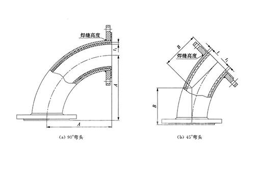 鋼襯塑彎頭尺寸測量為法蘭端面襯塑層到另一法蘭端面襯塑層中心的距離,如下圖所示: