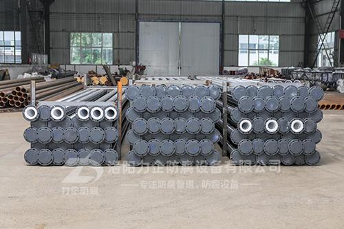 制作好后應檢查鋼管和管件法蘭密封面襯層是否平整、均勻、五焊渣、飛濺等影響密封效果的缺陷。管道與管件的襯層面應無針孔、氣泡、砂眼、傷痕等等妨礙使用的缺陷。應使用電火花檢測,合格方可進入下一工序。